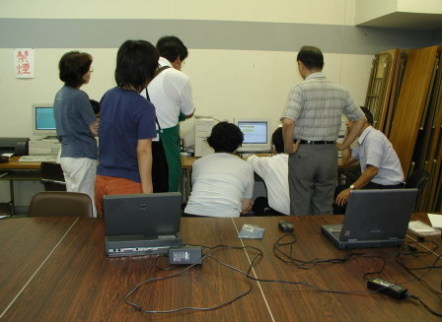 パソコン7台をLAN接続し、関連HPを閲覧等、研修を行いました。